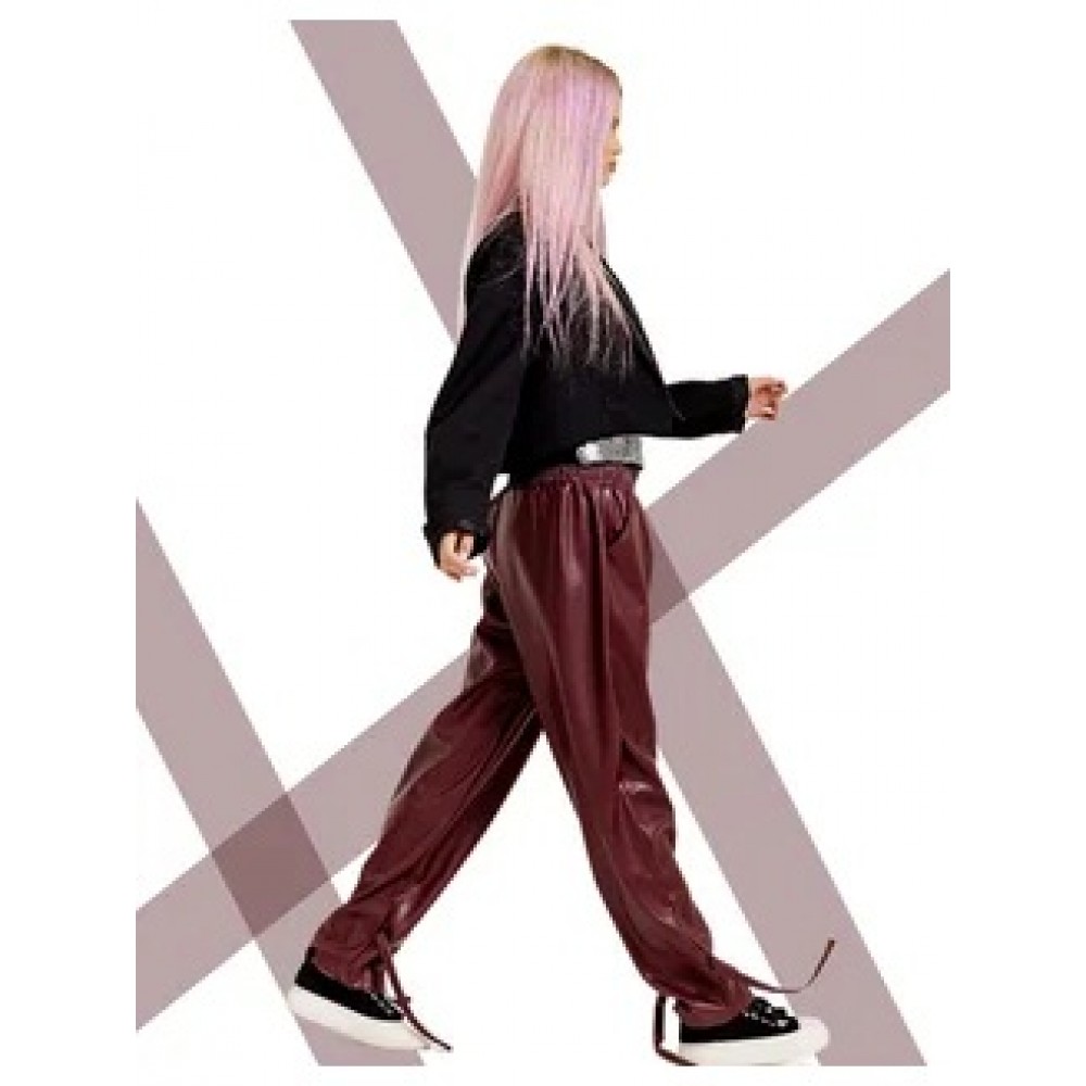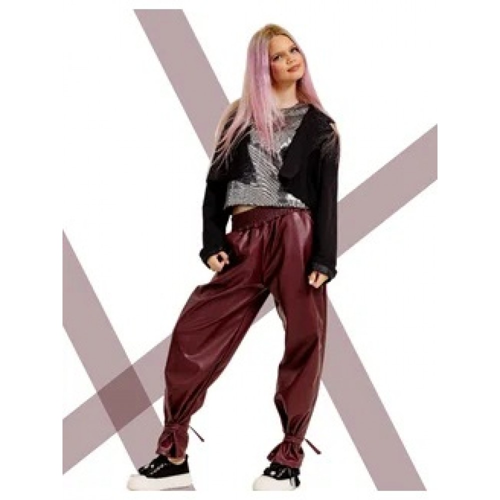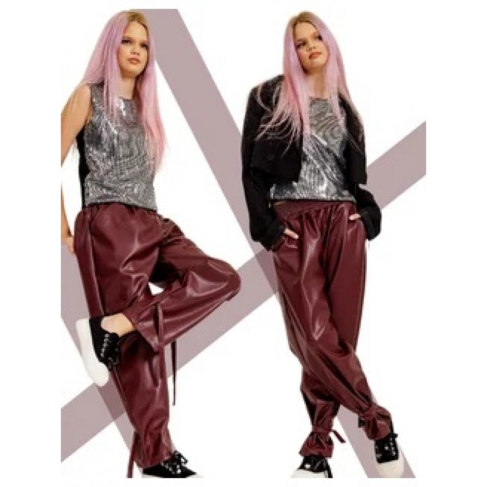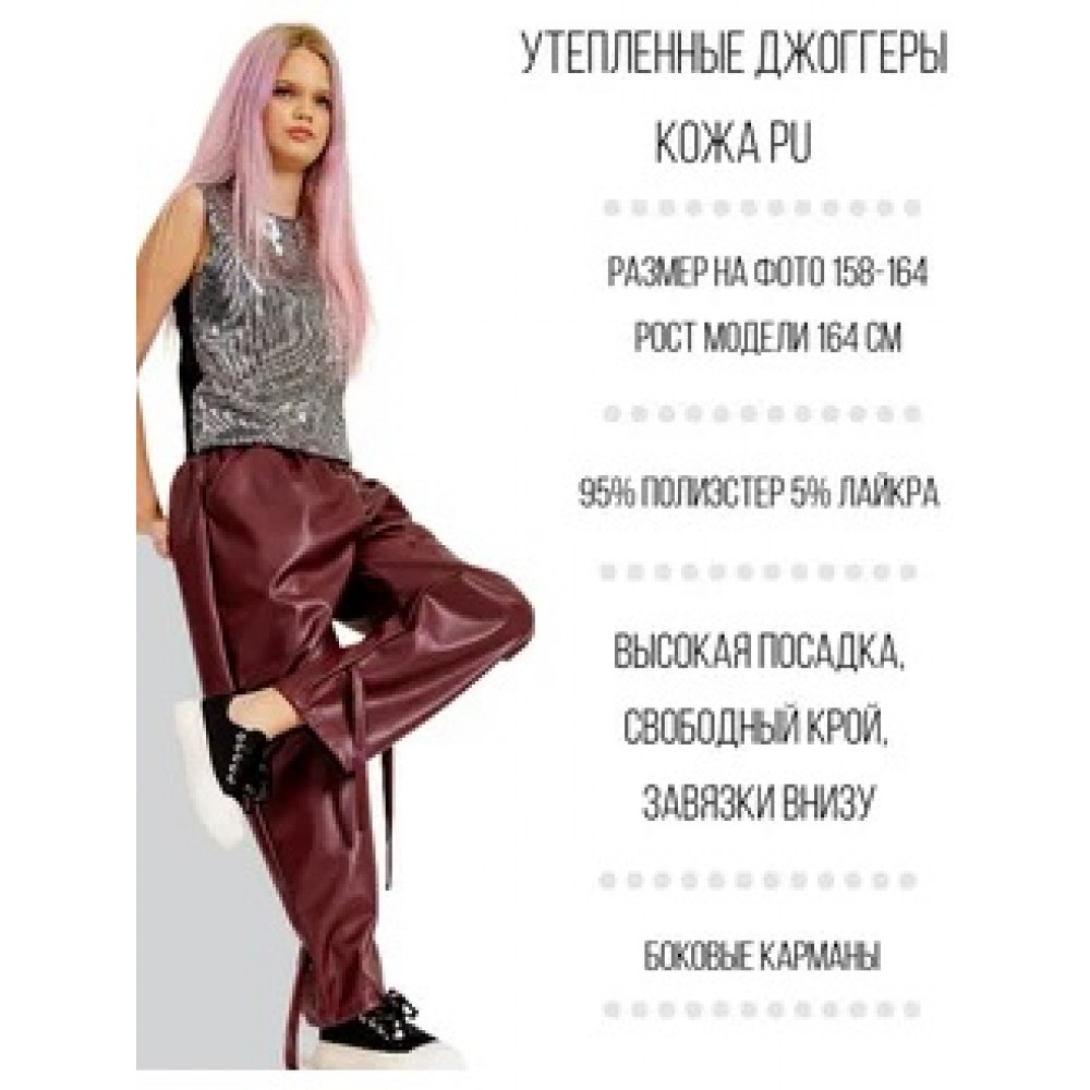 Брюки джоггеры утепленные кожа. Бордо