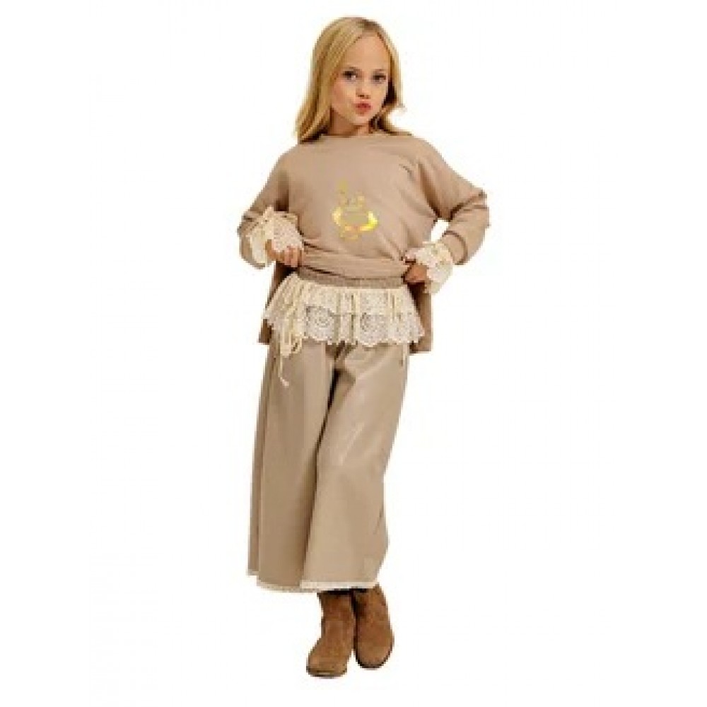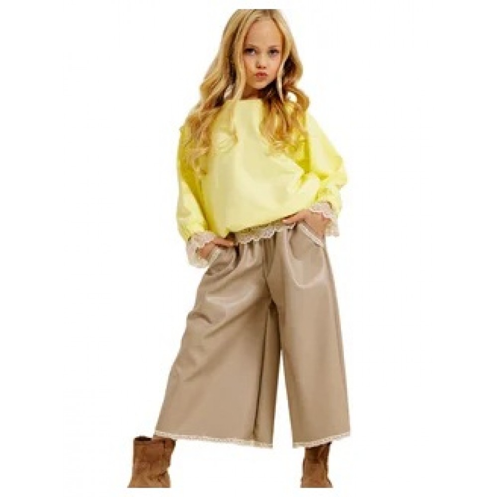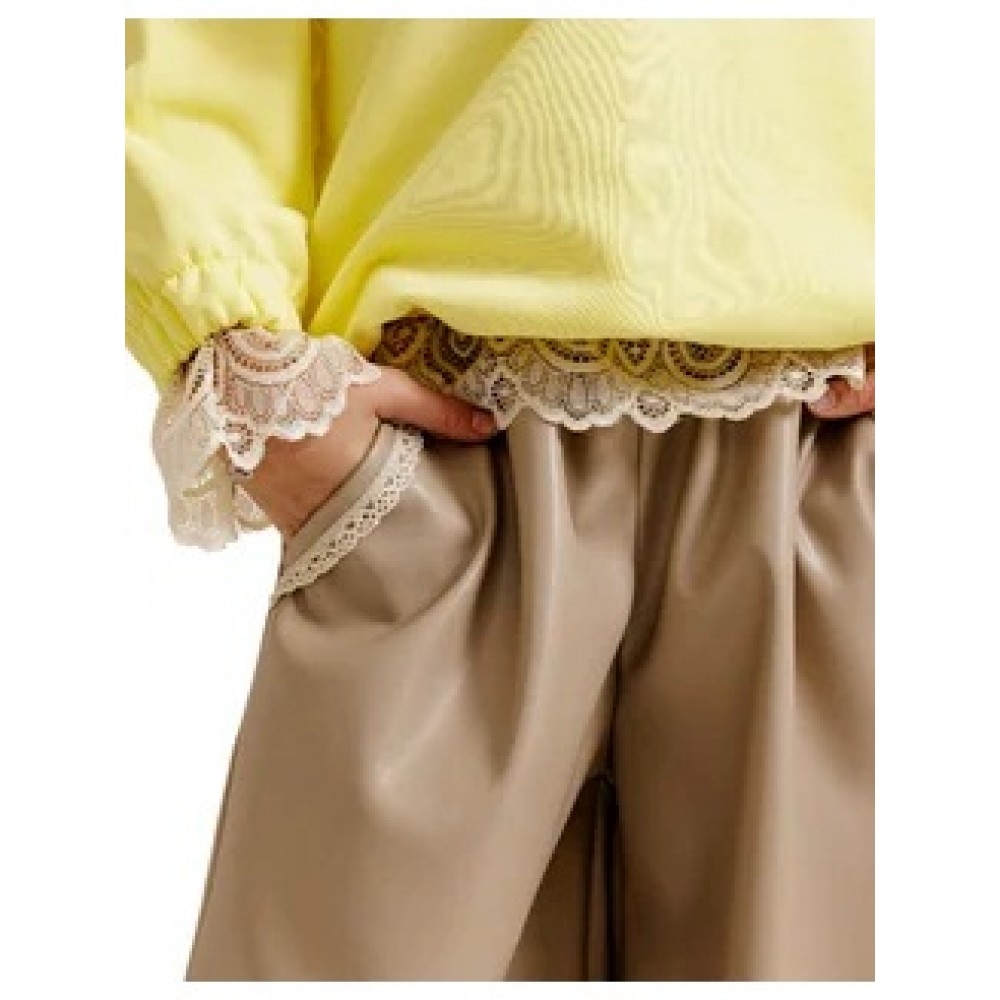 Свободный крой и высокая посадка создают удобный и модный силуэт, а декоративная отделка хлопковым кружевом добавляет изюминку.