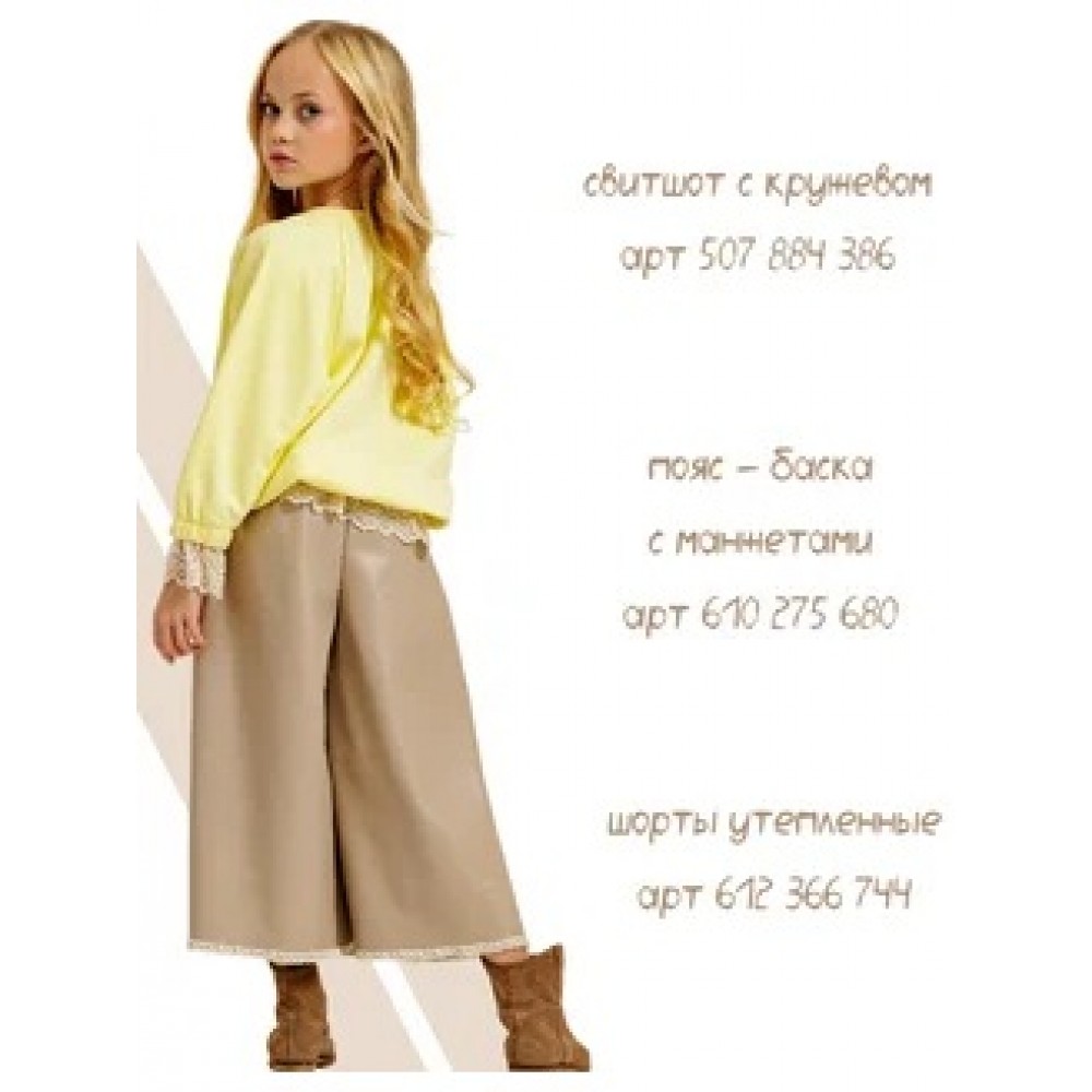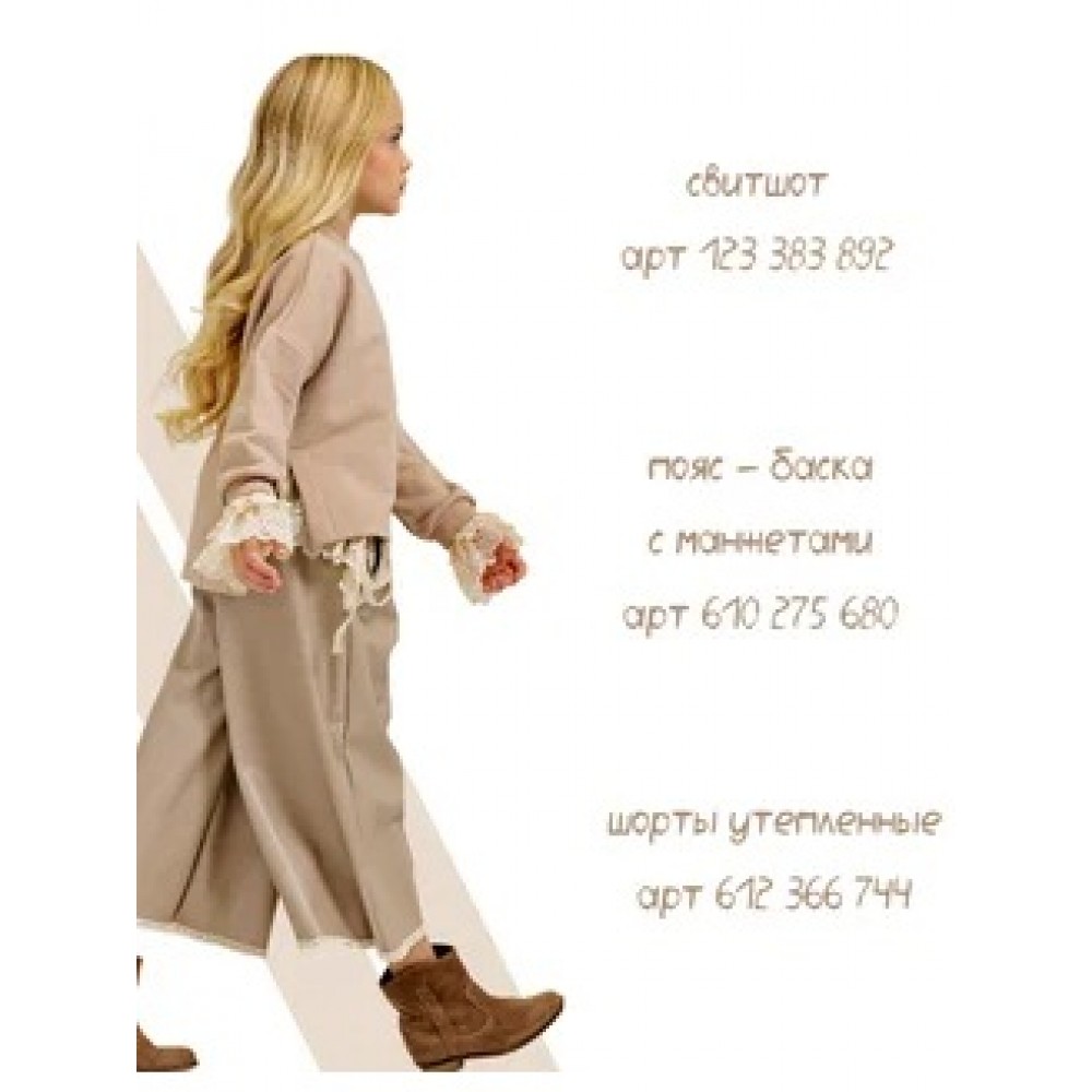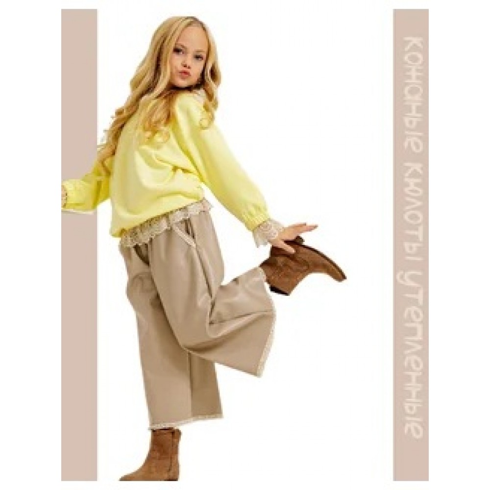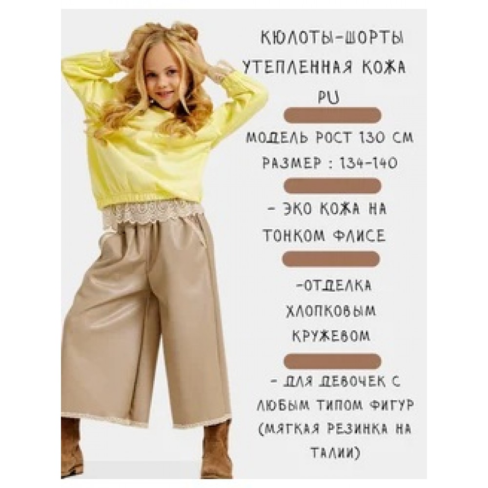 Шорты кюлоты утепленные кожаные. Цвет бежевый нейтральный
