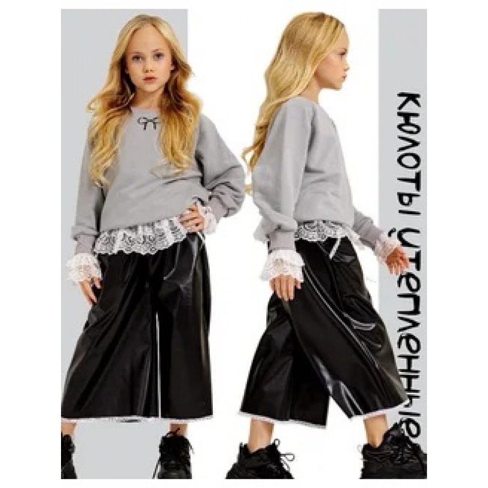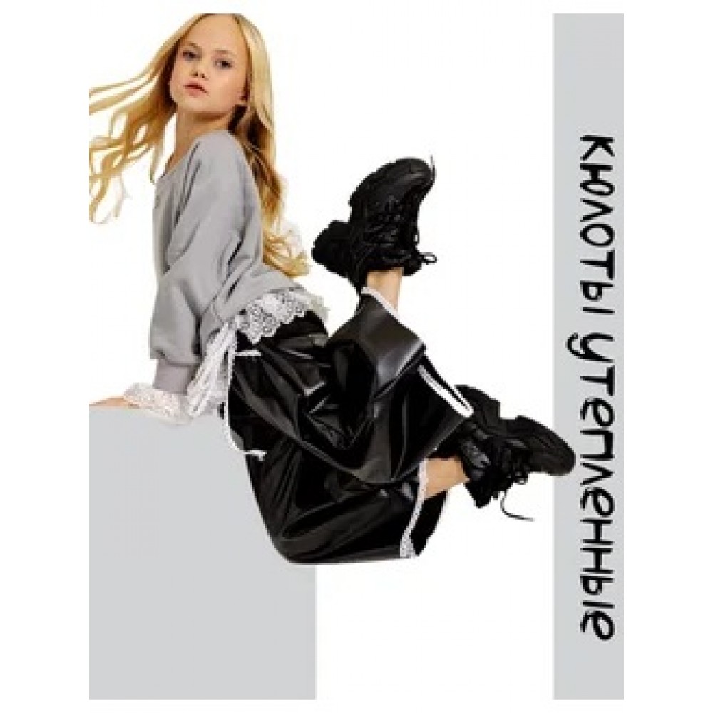 Шорты кюлоты утепленные кожаные. Цвет черный