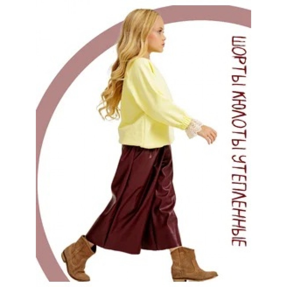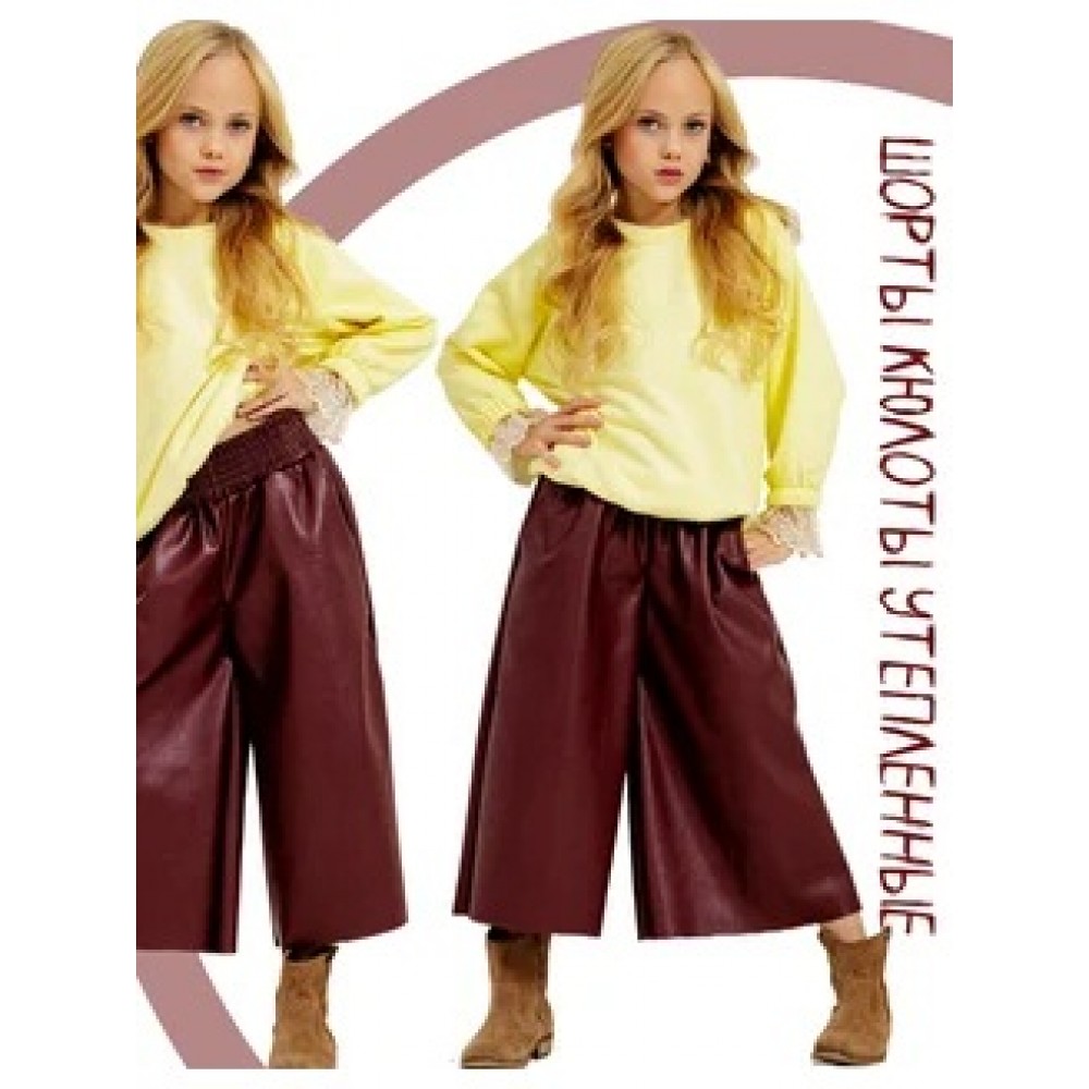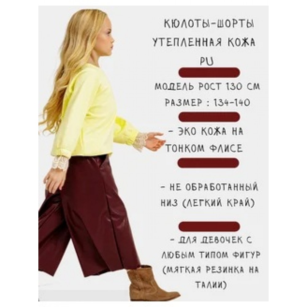 Шорты кюлоты утепленные кожаные. Цвет винный