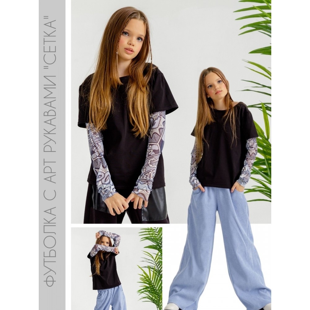 Футболка-лонгслив, с декоративными длинными рукавами из сетки.