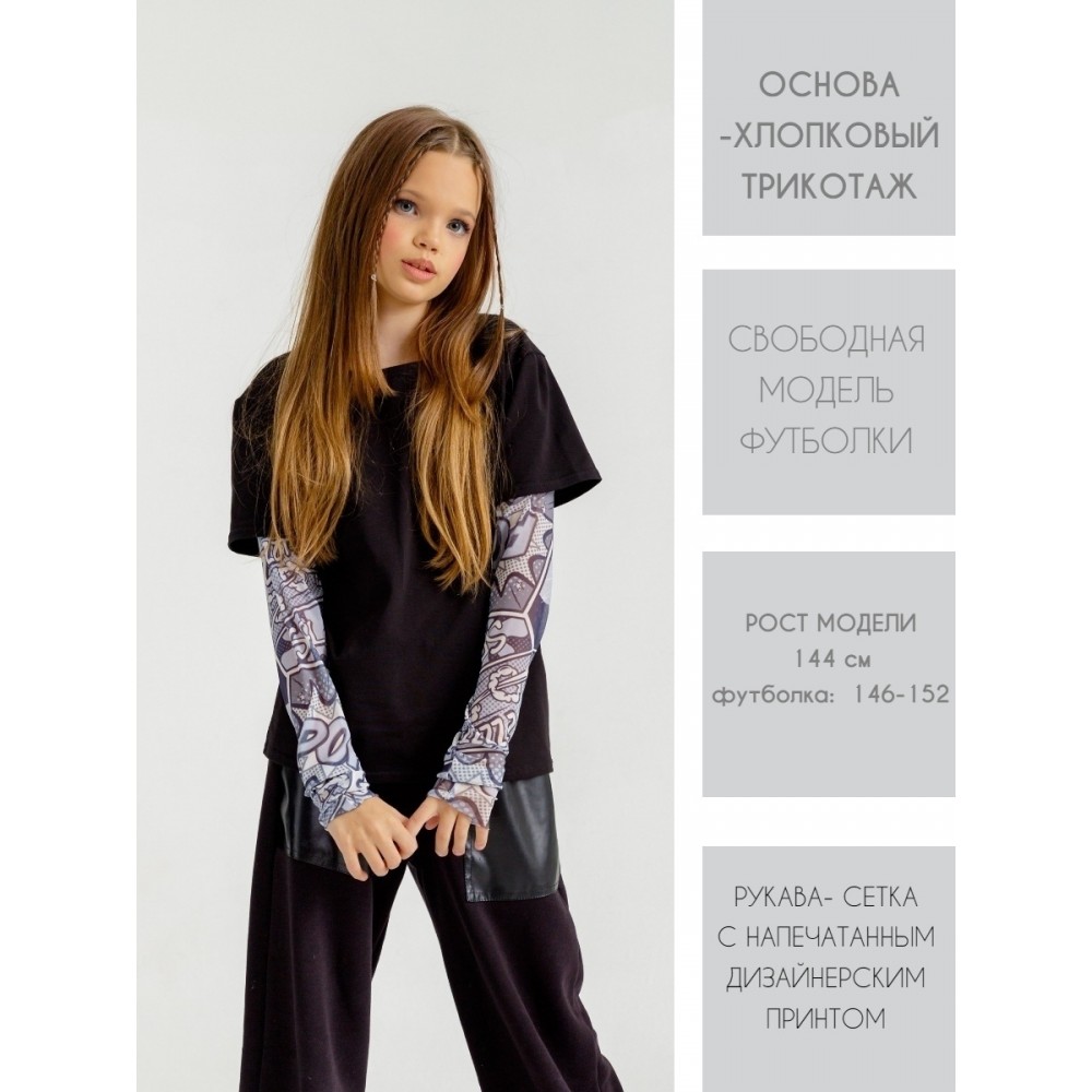 Футболка выполнена из хлопкового трикотажа (92% хлопок и 8% лайкра) высшего качества; рукава- 100% полиэстер, выполнены и сетки с нанесенным принтом, очень нежные и приятные к телу.