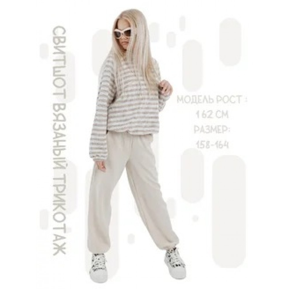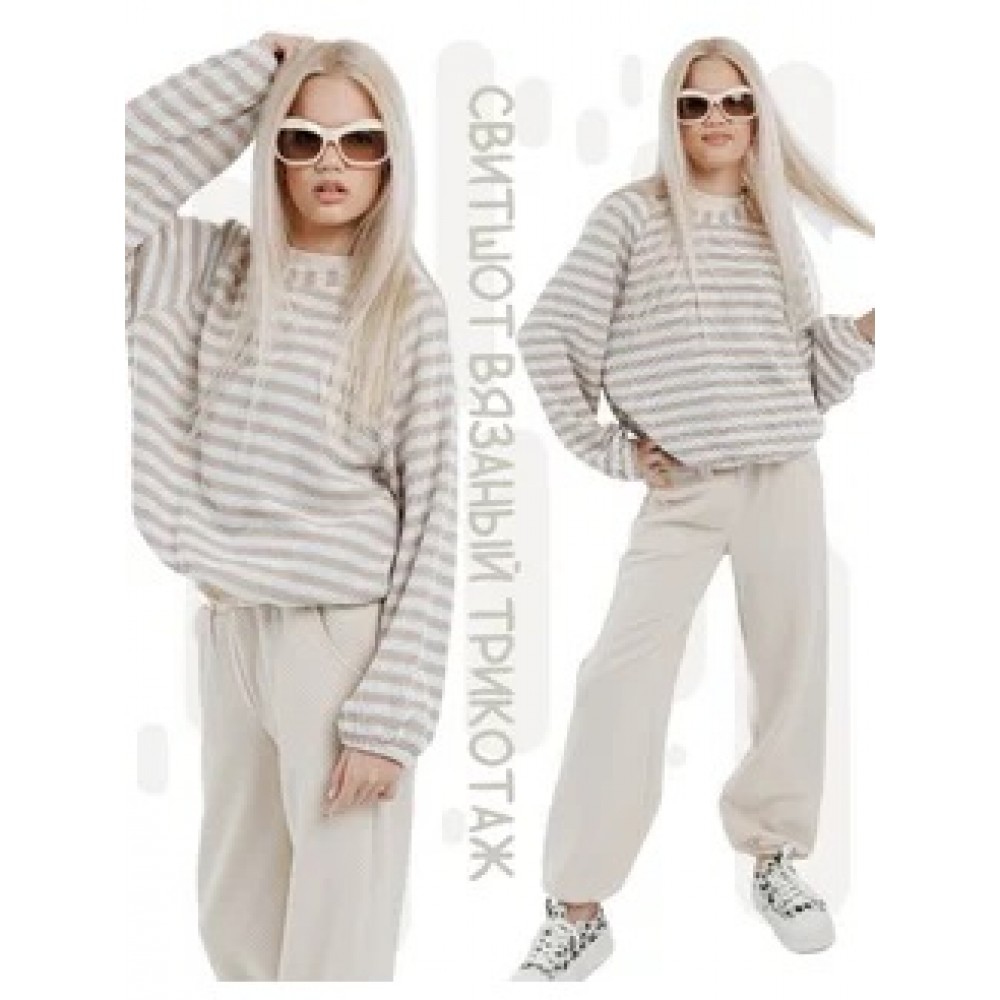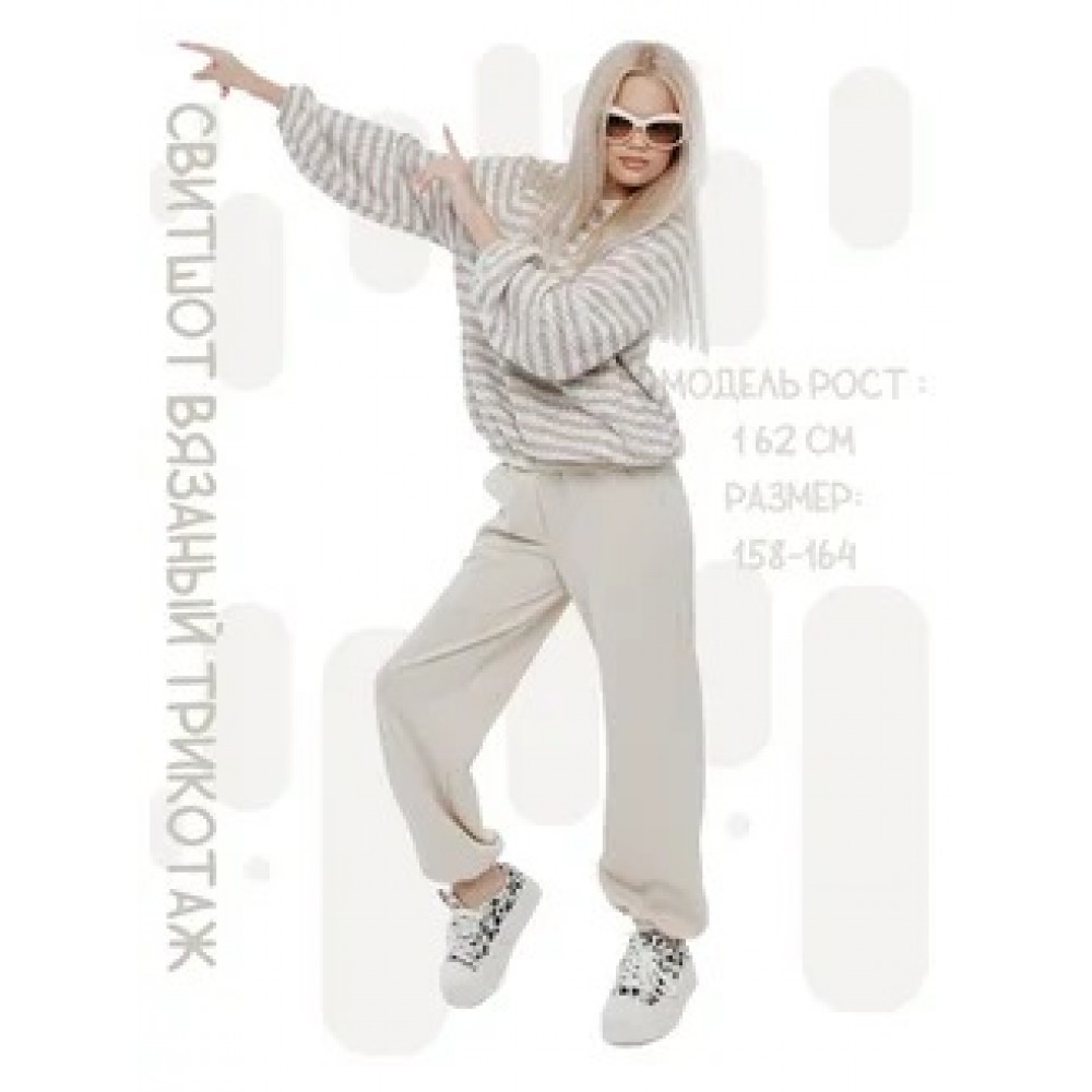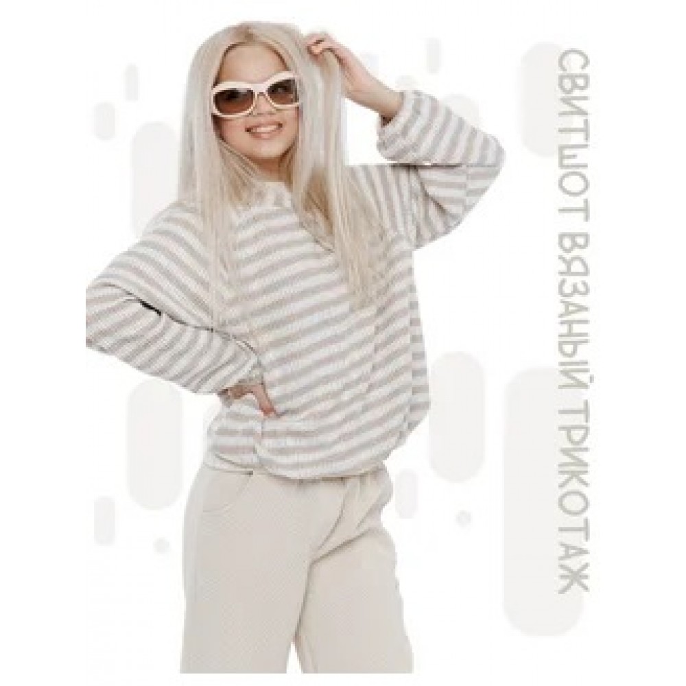 Свитшот вязаный в полоску кремовый капучино