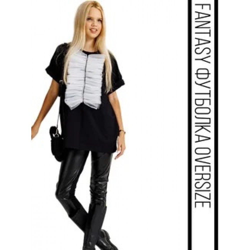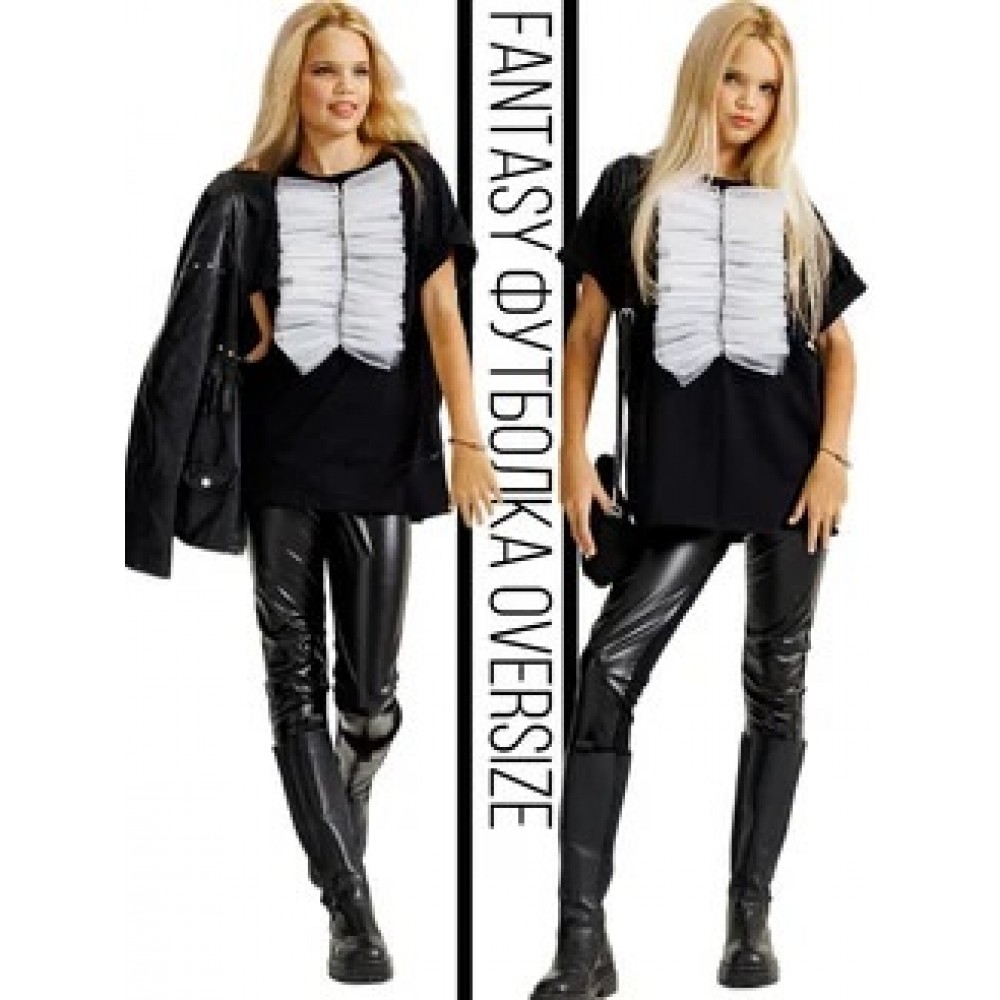 Футболка c жабо в, действительно, комфортном стиле OVERSIZE для активных и модных девочек.
