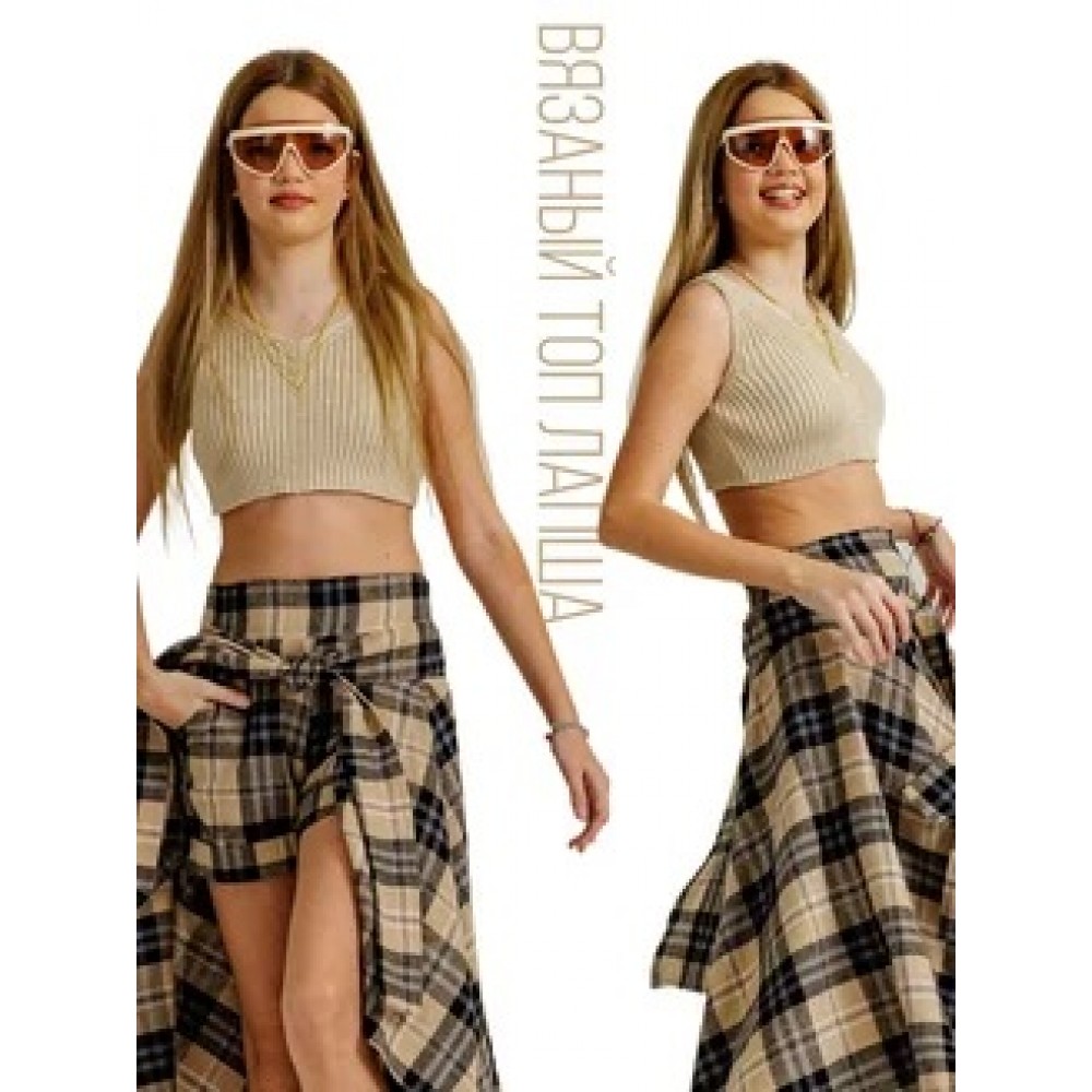 Вязаный укороченный топик лапша беж