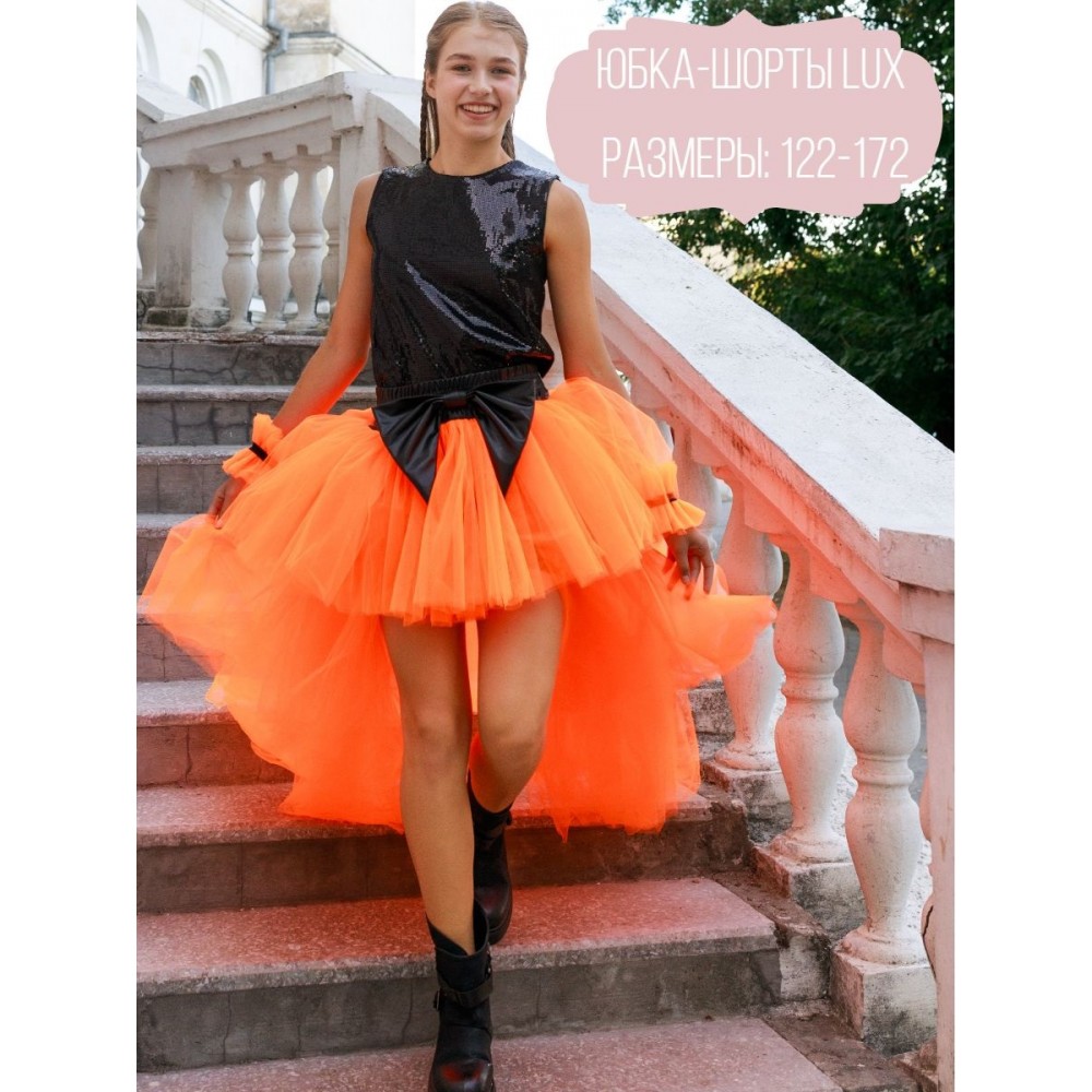 Фатиновая юбка-шорты LUX с кожаным бантом для стильных девочек.