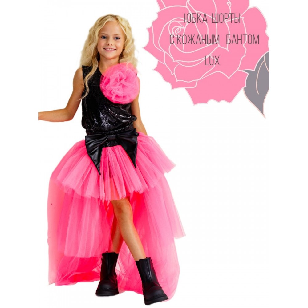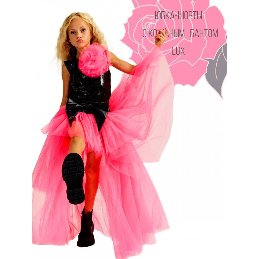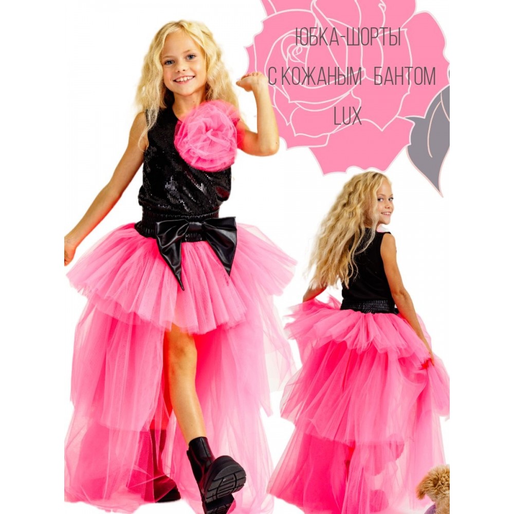 Фатиновая юбка-шорты LUX с кожаным бантом для стильных девочек. Важно: бант фатиновый на груди у модели - не входит в стоимость. Густая сборка- 9 слоев фатина; юбка асимметричного кроя "mini-maxi"; шорты, заменяющие подклад, не стеснят движений- в них комфортно двигаться и очень удобно танцевать! Рост нашей модели 130 см, размер юбки на ней 134-146 .