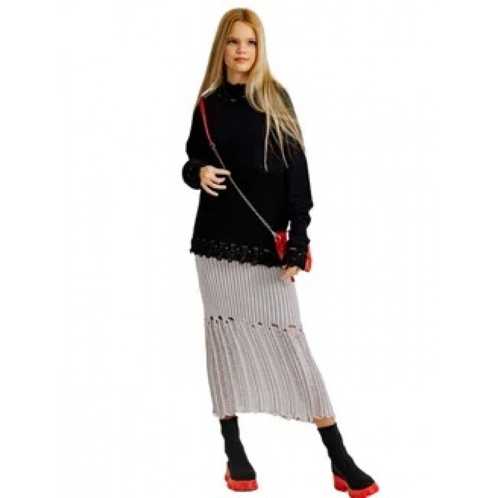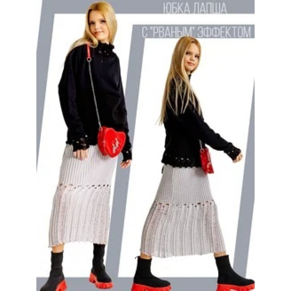 Юбка вязаная с рваным эффектом серая