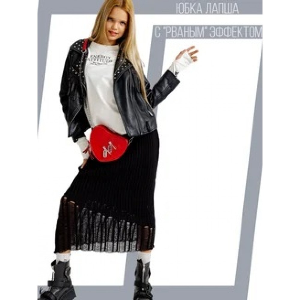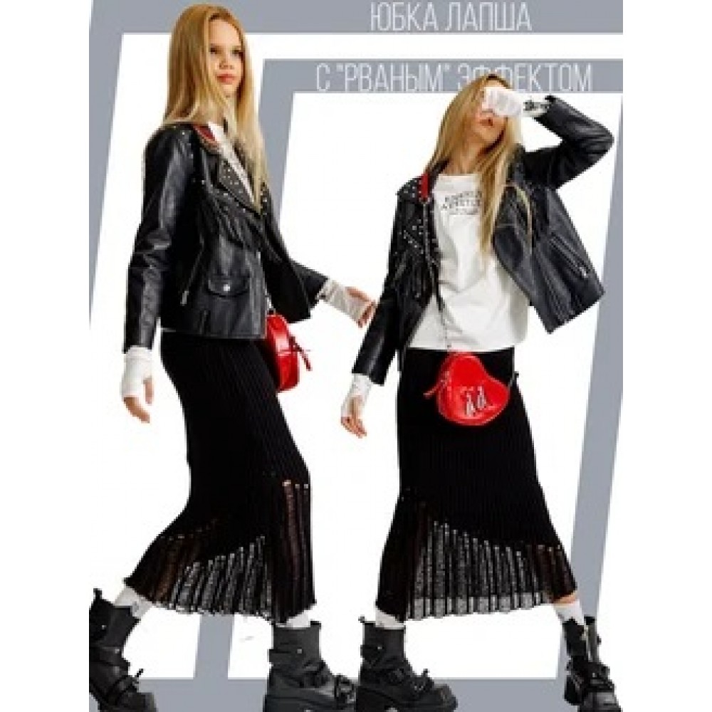 Юбка вязаная с рваным эффектом черная