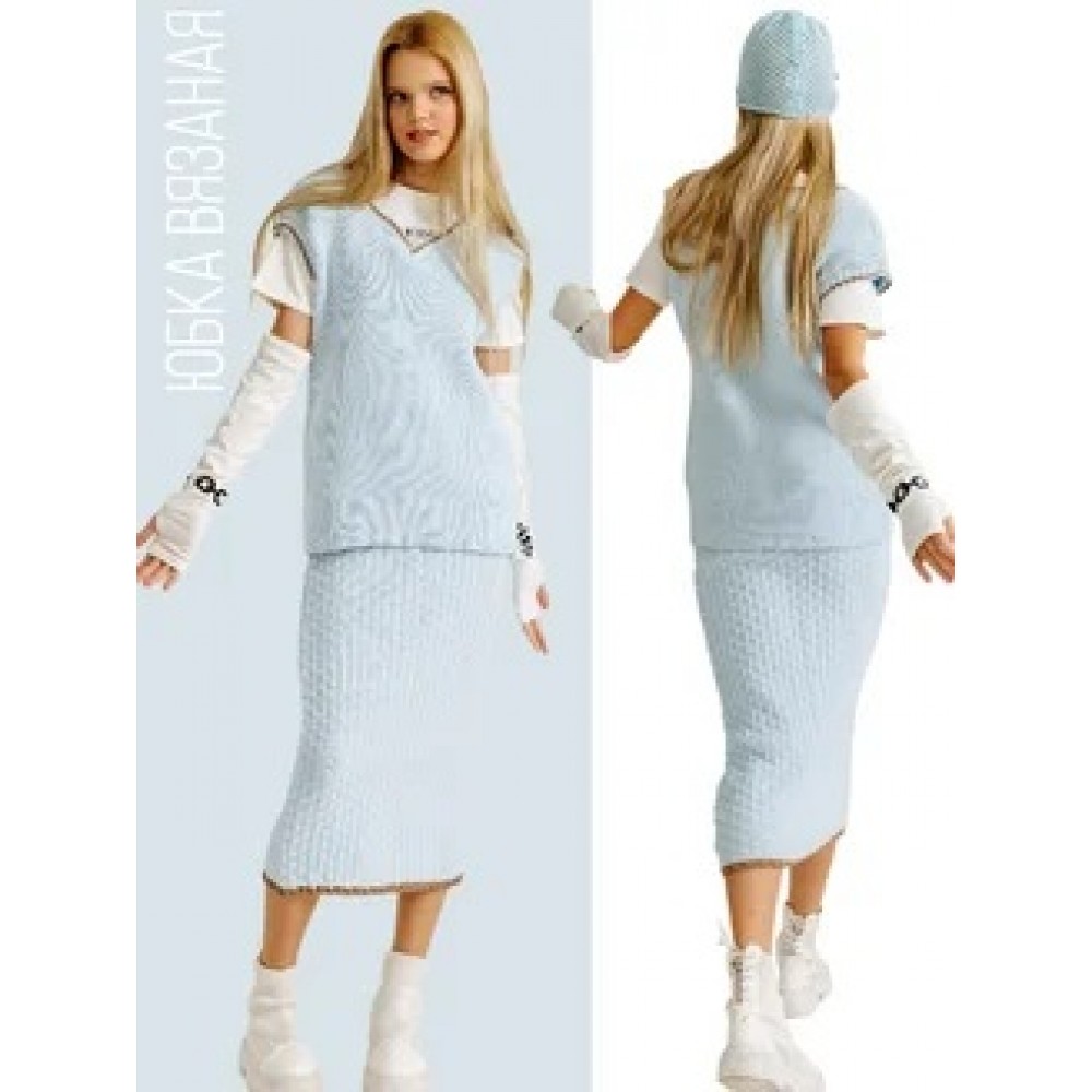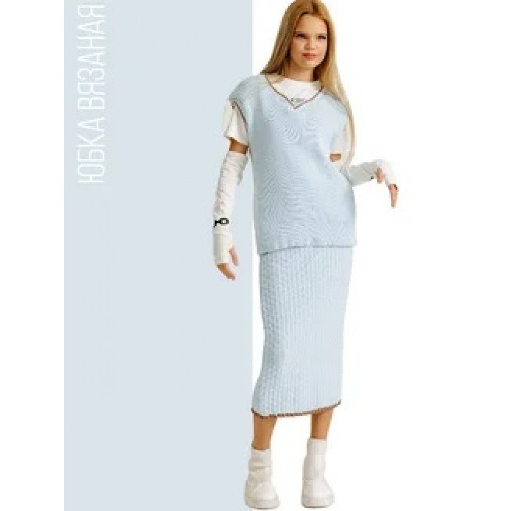 Юбка вязаная миди голубая Bloomy-line