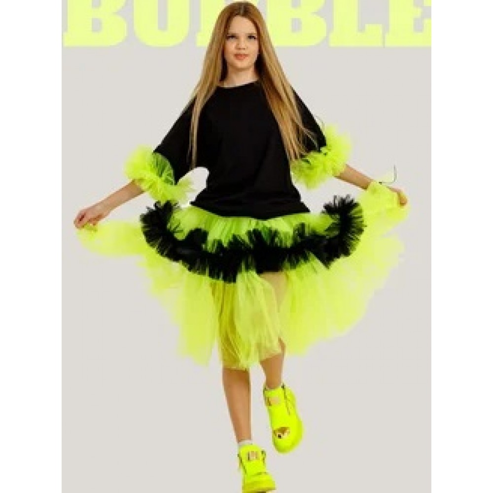 Фатиновая юбка-шорты Bubble супер объем неон с черным