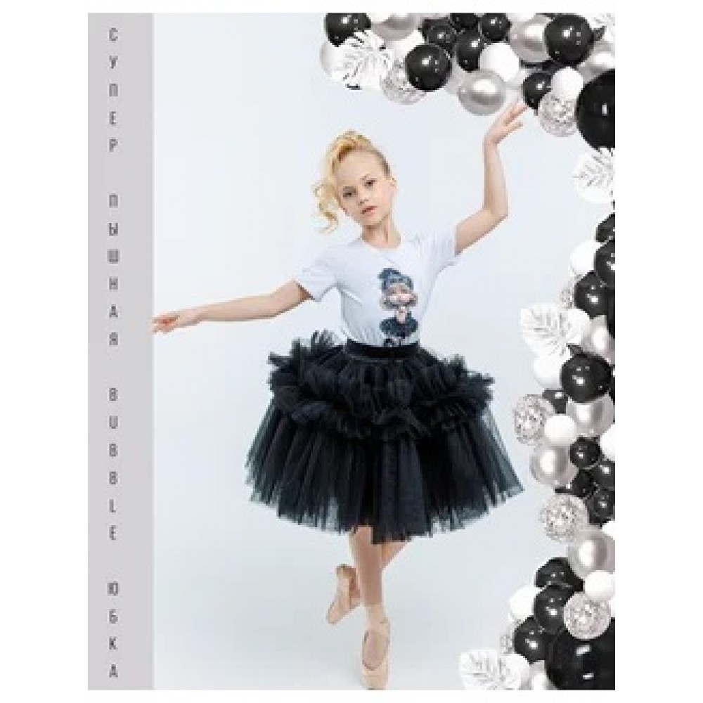 Фатиновая юбка-шорты Bubble супер объем черная матовая