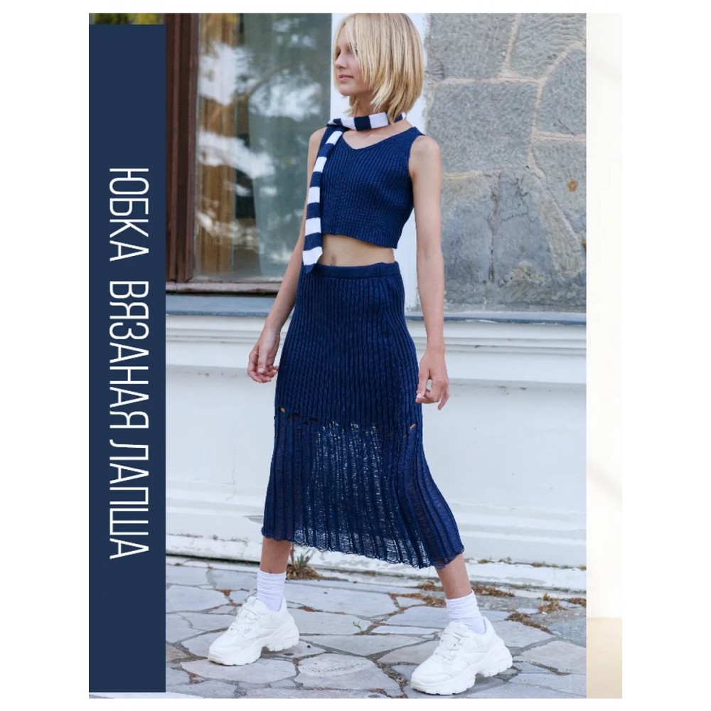 Юбка вязаная с рваным эффектом синяя, Bloomy-line