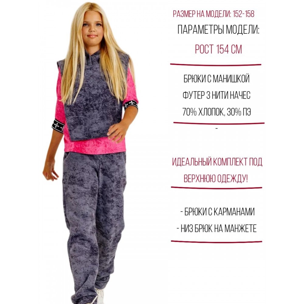 В комплекте так же есть брюки с боковыми карманами и на плотной манжете внизу.