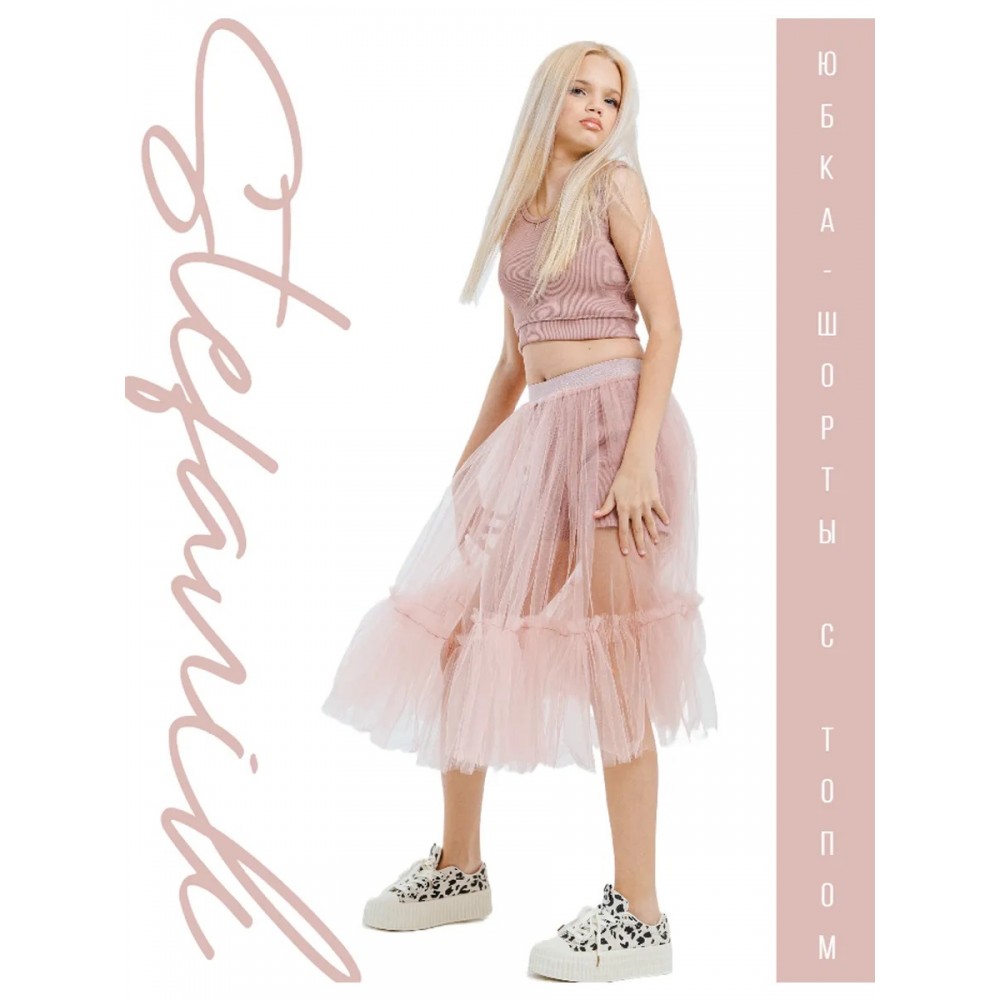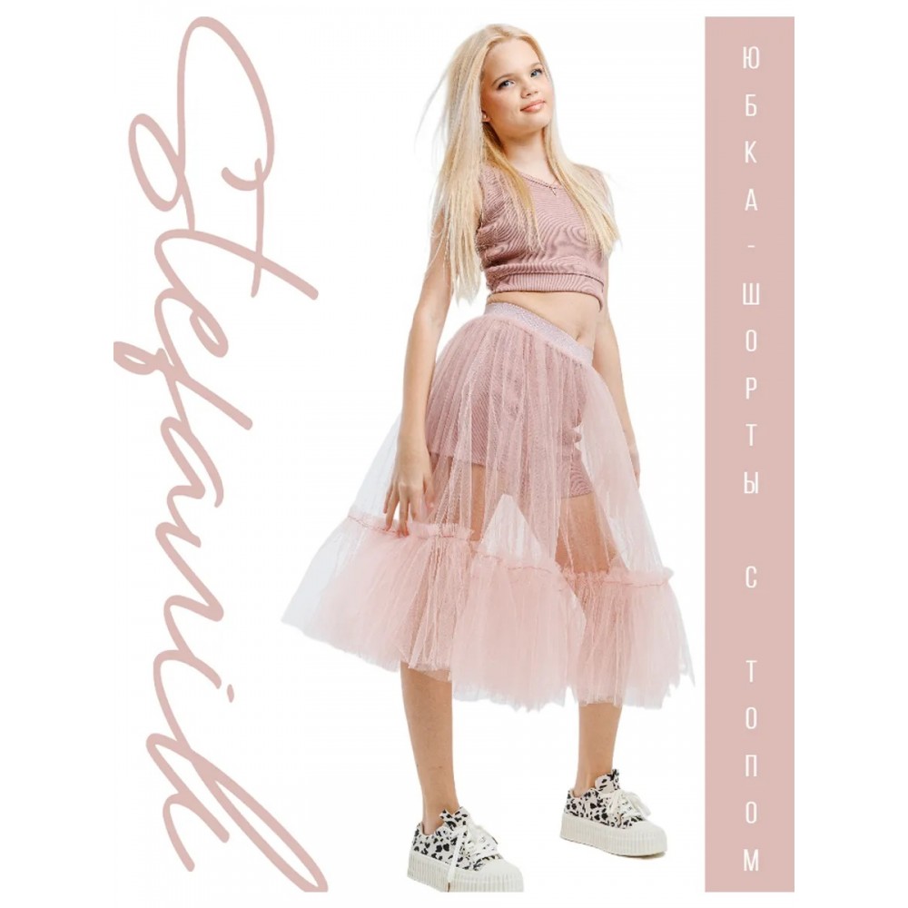 Костюм "пудра" от STEFANIKA - это стильное и удобное решение для юных модниц. Модель представлена в виде топика и юбки-шорт с пышной фатиновой юбкой, создающей эффект воздушности и грации. Модный желтый цвет добавляет образу яркости и индивидуальности. Костюм выполнен из мягкой трикотажной хлопковой ткани в рубчик, которая приятна к телу и обеспечивает комфорт в носке. Благодаря эластичной резинке на талии, костюм удобно сидит на фигуре.