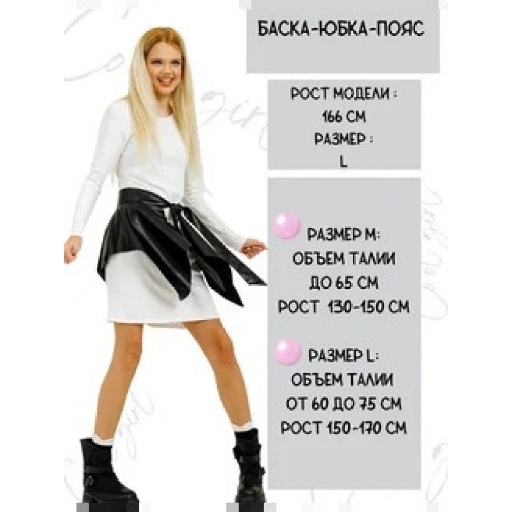 Изготовлена баска из премиальной экокожи PU, которая отличается высокой износостойкостью, устойчивостью к влаге и перепадам температур. Наш пояс-баска подходит для любой фигуры, подчёркивает талию и визуально корректирует силуэт.